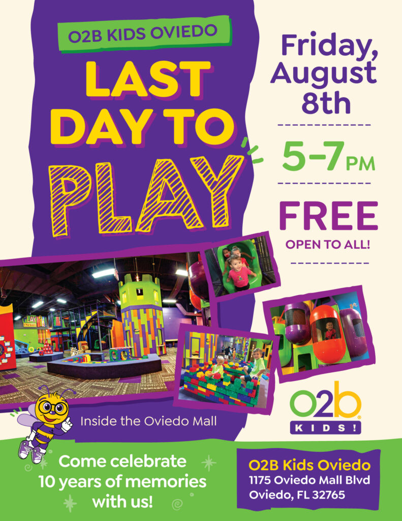 You’re invited to one Last Day to Play at O2B Kids Oviedo!