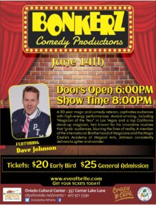Bonkerz Comedy Night featuring Dave Johnson. Doors open at 6pm. Show starts at 8pm. Save with early bird pricing while they last. All seating is