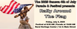 Join Us in Celebrating “Rally Around the Flag” at The Geneva 4th of July Parade & Festival Date: July 4 2025Time: 8:30 AMVenue: Rural Heritage