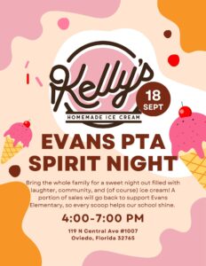 Join us for PTA Spirit Night at Kelly’s Homemade Ice Cream! Bring the whole family for a sweet night out filled with laughter, community, and (of
