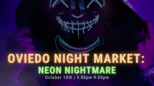 Step into the future—if the future was glowing, gritty, and a little bit haunted. This month’s Oviedo Night Market transforms into a cyberpunk-inspired wonderland with buzzing